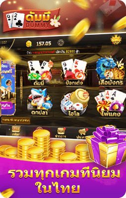 ไพ่ดัมมี่ หรือ Dummy (หรือเรียกว่าไพ่ดำมี่/รัมมี่ไทย) เป็นเกมส์ไพ่ยอดนิยมในเมืองไทย จำเป็นต้องอาศัยทักษะและความจำด้วย แอพฯนี้ยังมีเกมส์นิยมอื่นๆของไทย รวมมีไพ่แคงไทยที่สนุก ป๊อกเด้ง/Pokdeng ที่สะใจ เก้าเก(รวมเก้าเก2+2)ที่ต้องอาศัยทักษะ ไฮโลและน้ำเต้าปูปลาพื้นบ้านที่นิยม Slots ไฉ่ซิงเอี๊ยที่น่าตื่นเต้น ไพ่ผสมสิบที่เล่นง่ายๆ นอกจากนี้ คุณยังสามารถเล่นสล็อตผลไม้ วงล้อได้ 24 ชั่วโมงจร้า!
